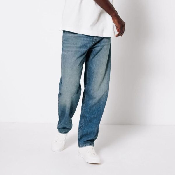 Ce jean loose à l’effet usé et aux déchirures apparentes est un indispensable pour un look décontracté.