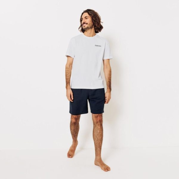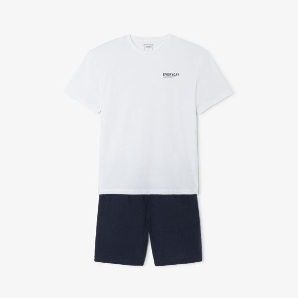 Pour des nuits douces et un look relax à la maison, optez pour ce pyjama composé d’un t-shirt blanc à imprimé et d’un short.