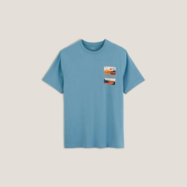 Idéal pour un style casual et décontracté, ce t-shirt imprimé paysage placé à la poitrine s’accorde parfaitement avec un jean ou un chino en toutes circonstances.